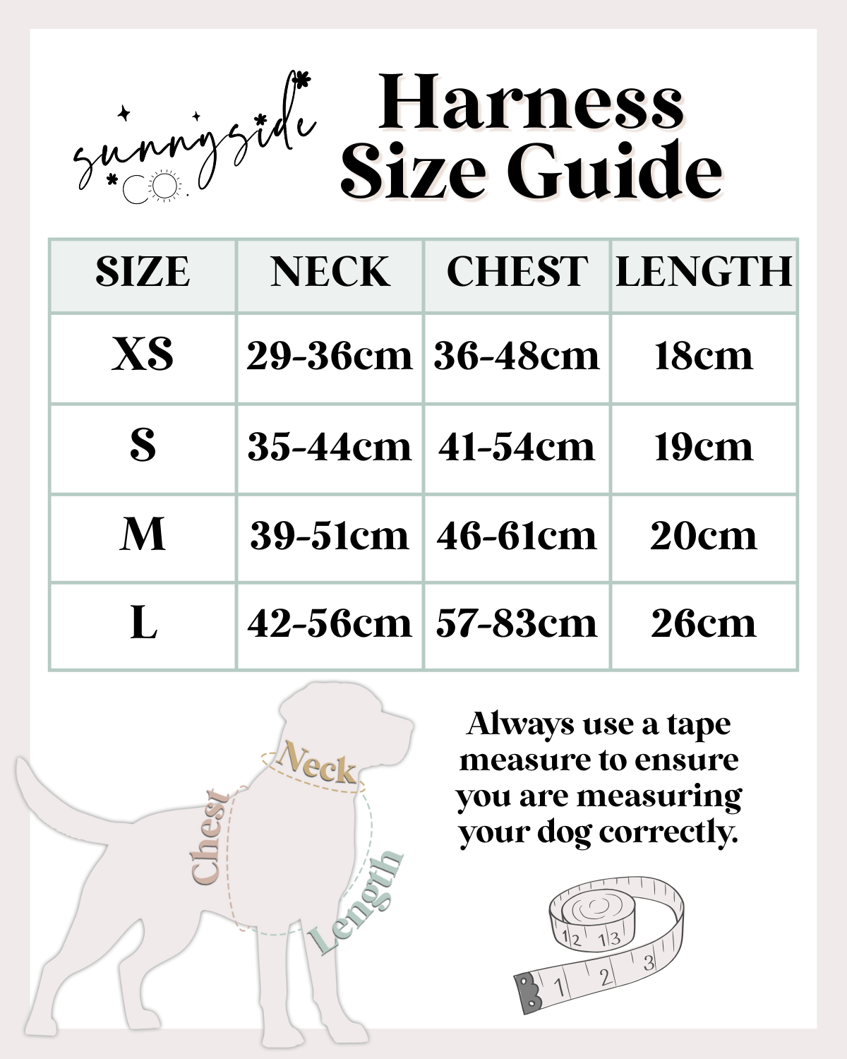 - Pair this harness with the matching lead, collar, poop bag holder, and bow tie