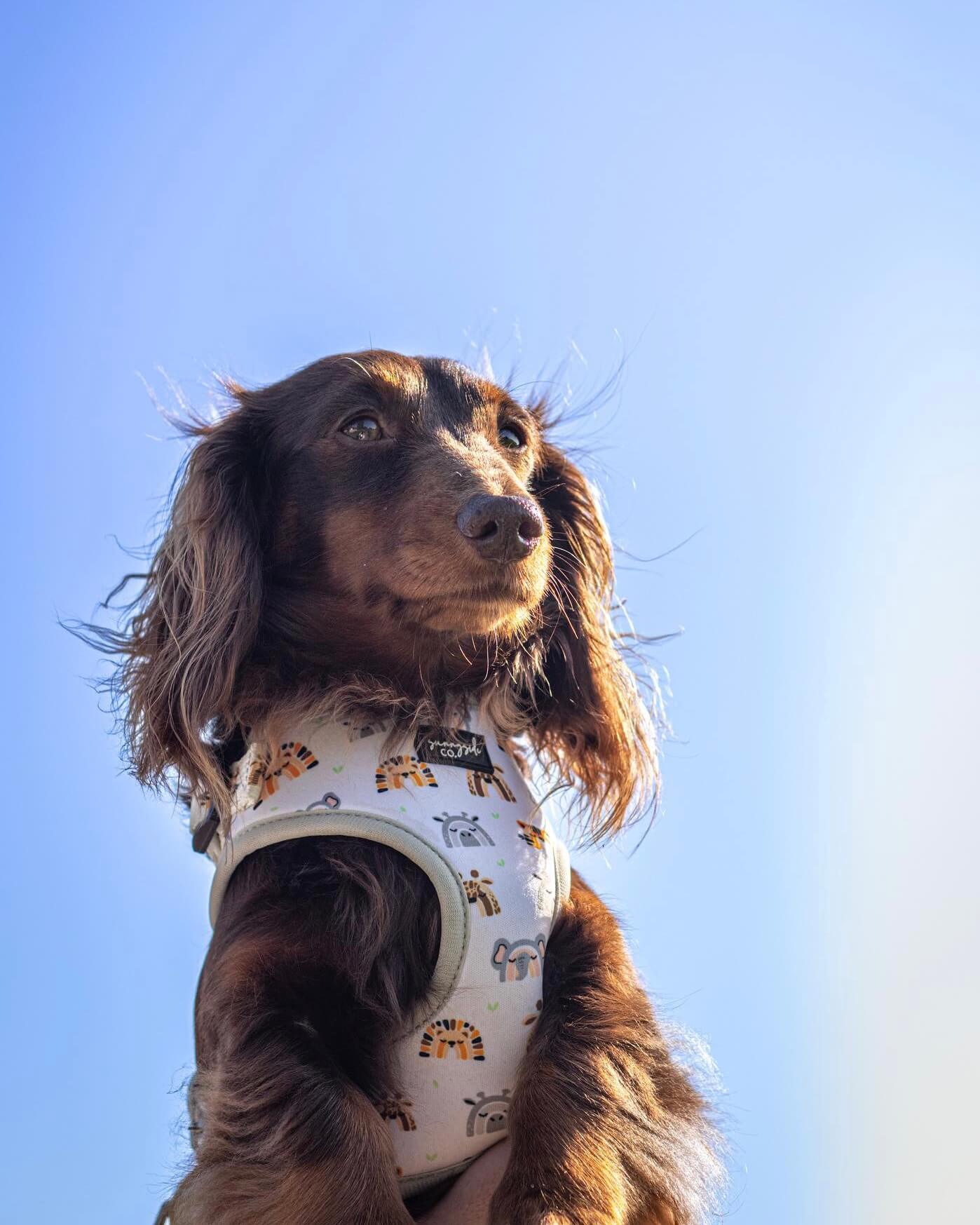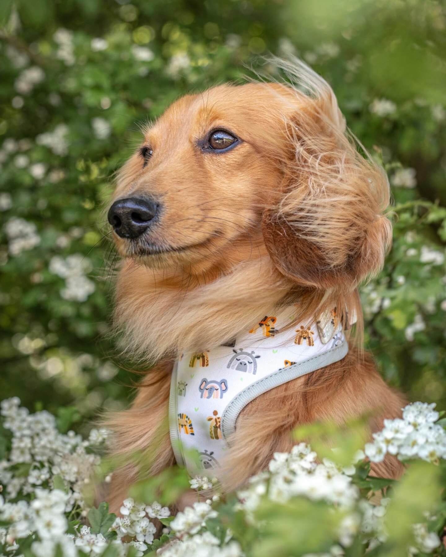 - Pair this harness with the matching lead, collar, poop bag holder and bow tie!