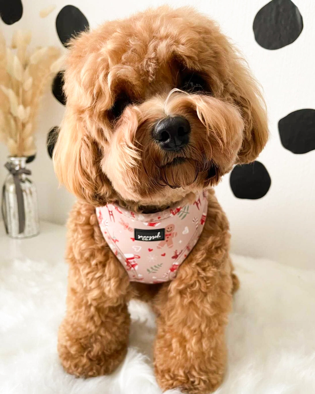 - Pair this harness with the matching lead, collar, poop bag holder, bow tie or Christmas Red rope lead!