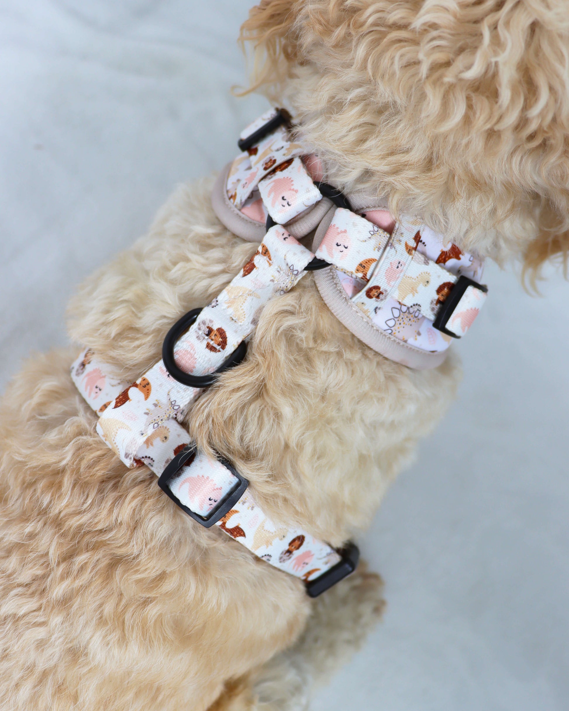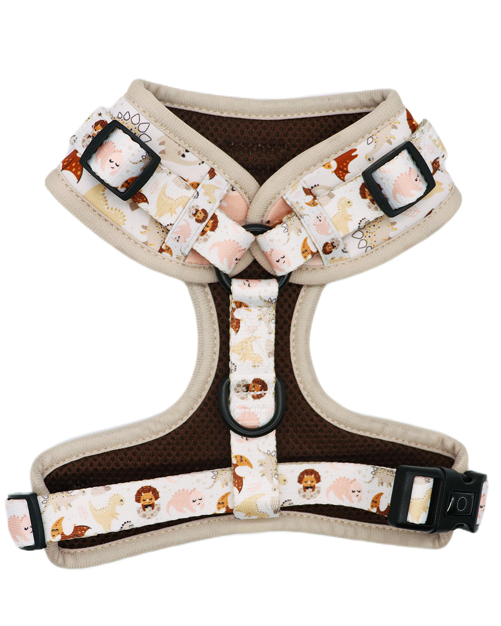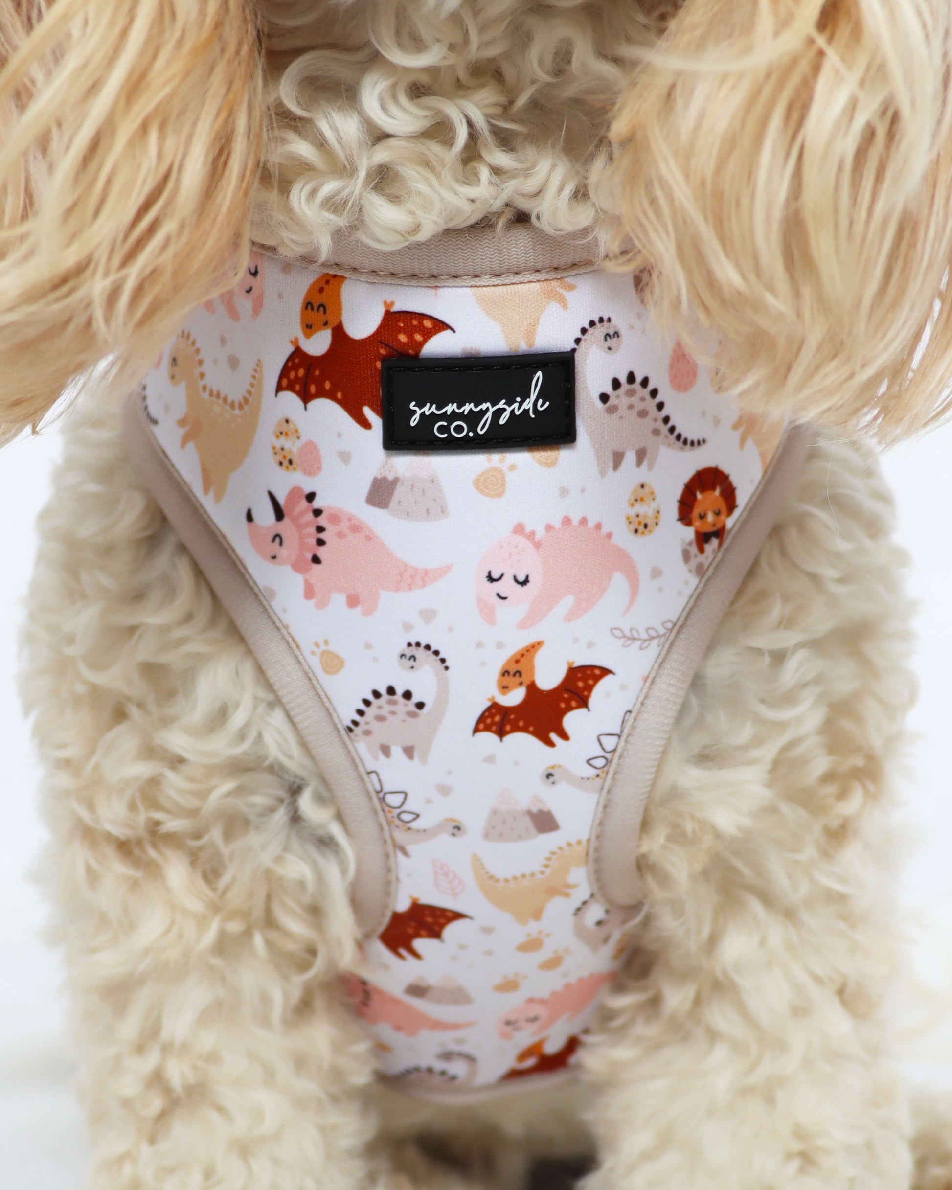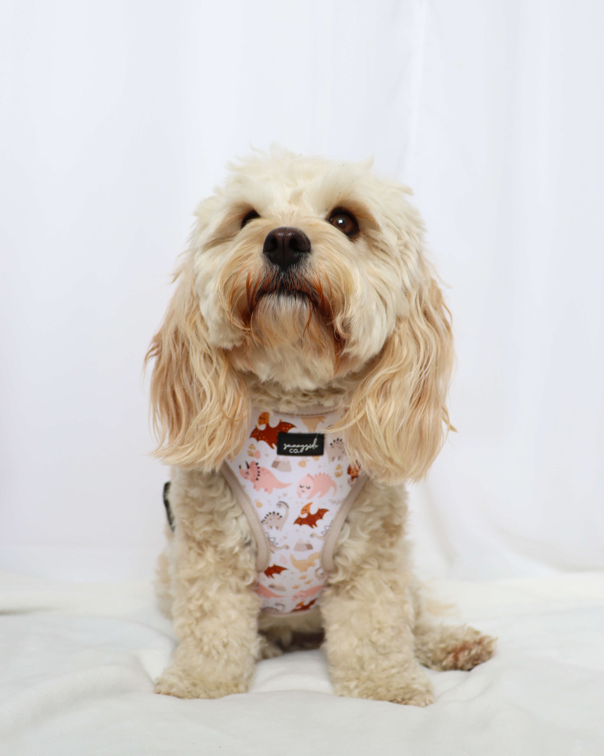 The 'Dainty Dinos' adjustable harness is the perfect design for your boho furbabies. Proving that dinos are for both boys and girls, this design features adorable dinosaur graphics in shades of pinks and neutrals. It really is just. too. CUTE!