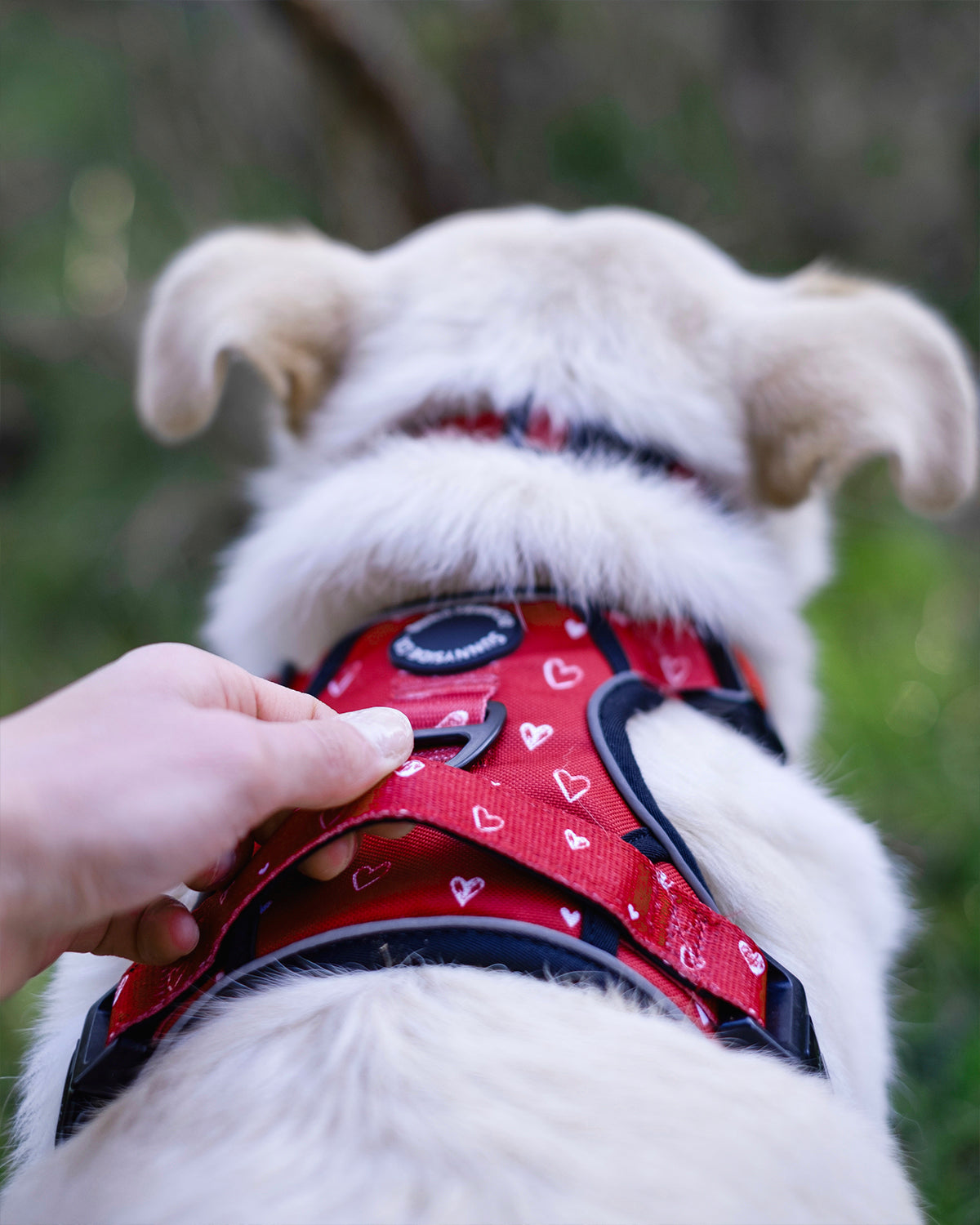 These beautiful, yet strong harnesses are perfect for larger breeds! Burgundy Love is a beautiful deep red design featuring hand-drawn white hearts. This unisex design is perfect for boys or girls.