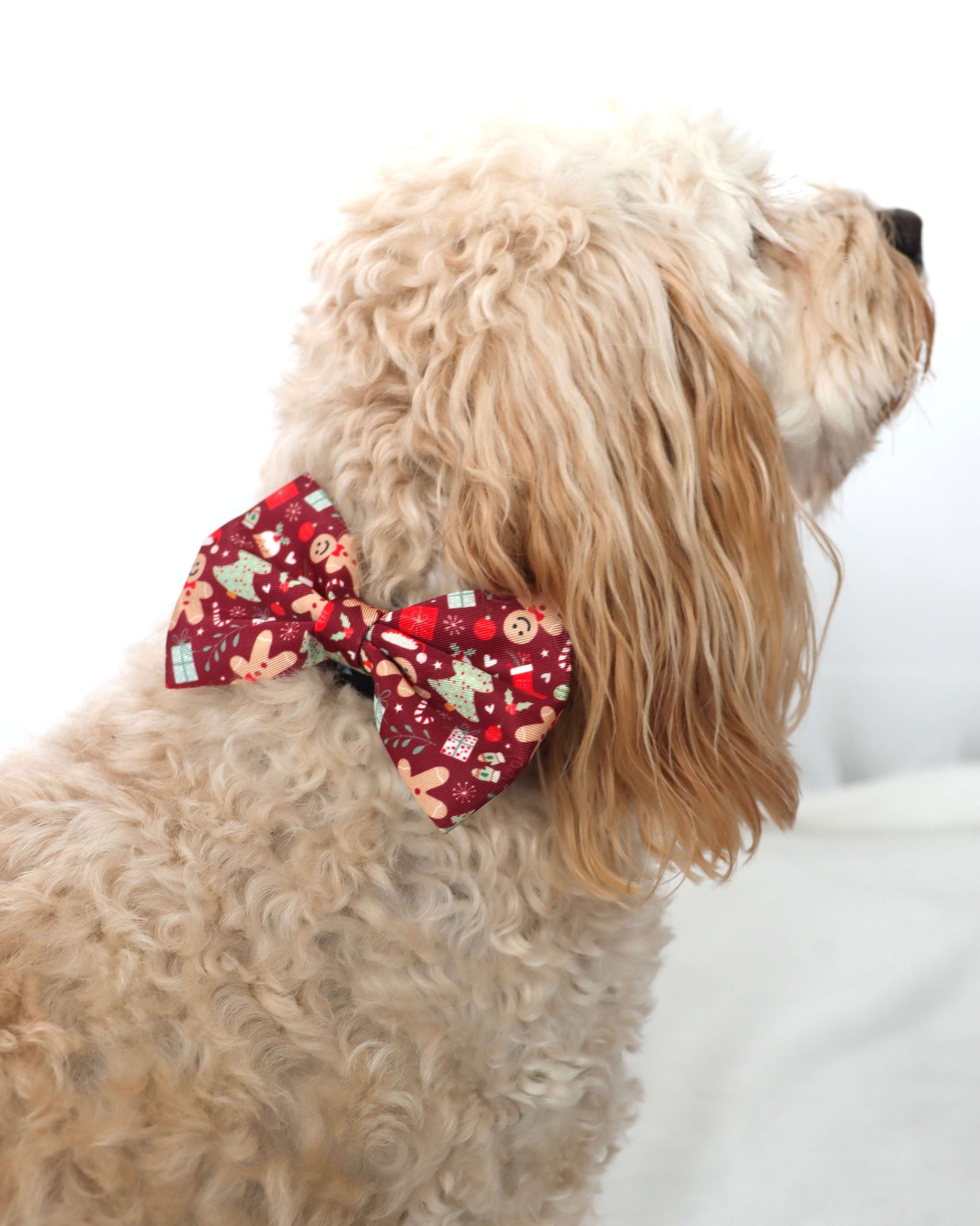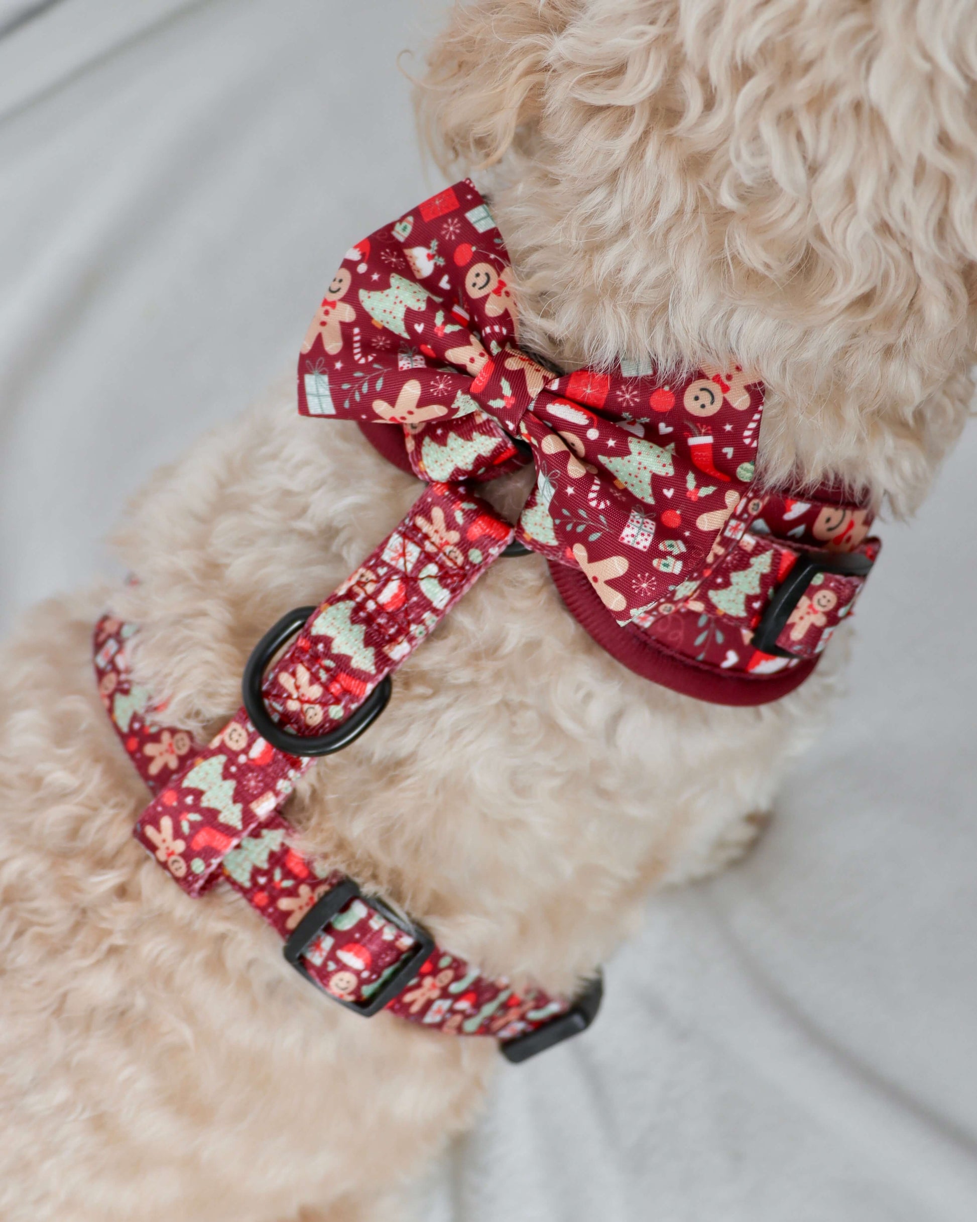 The perfect addition to any harness or collar! Our limited edition 'Tis the Season' collection is the ultimate Christmas design! Featuring our classic Gingie, along with your other favourite festive graphics such as sage green trees, presents, holly, candy canes & more. This beautiful deep red design is perfect for both boys and girls to wear during the holiday season!
