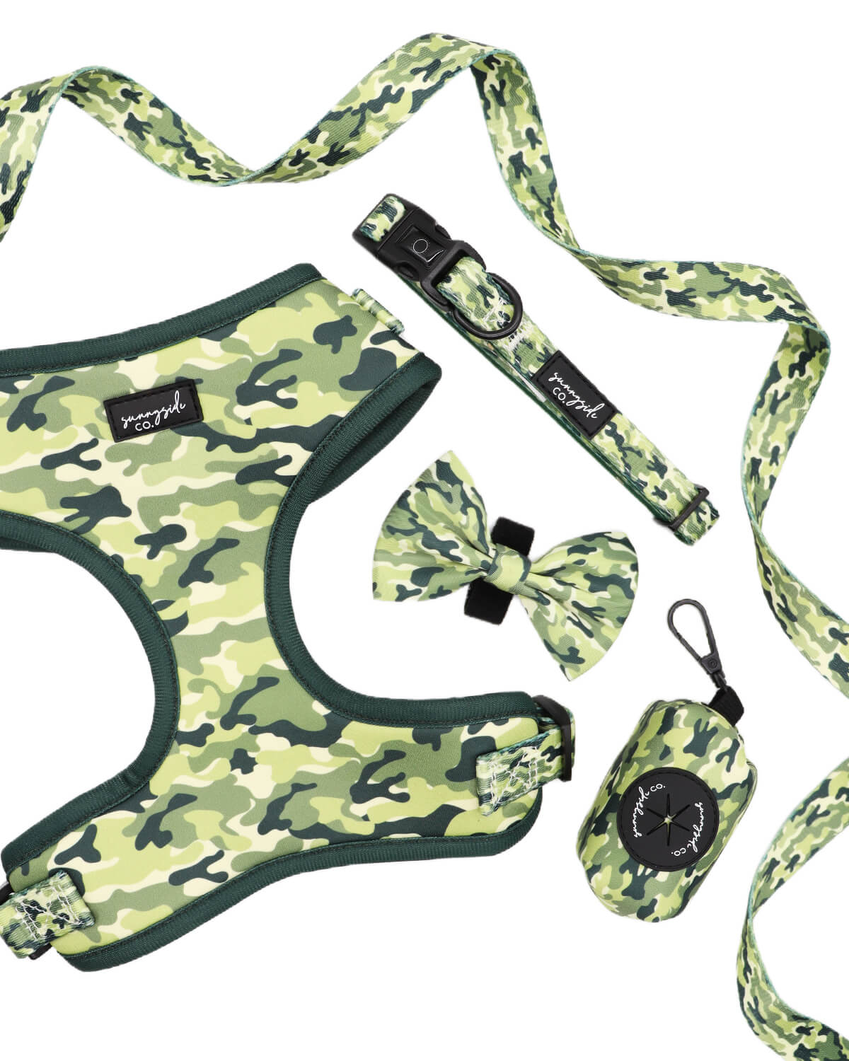 Pair this collar with the matching harness, lead, poop bag holder and bow tie!