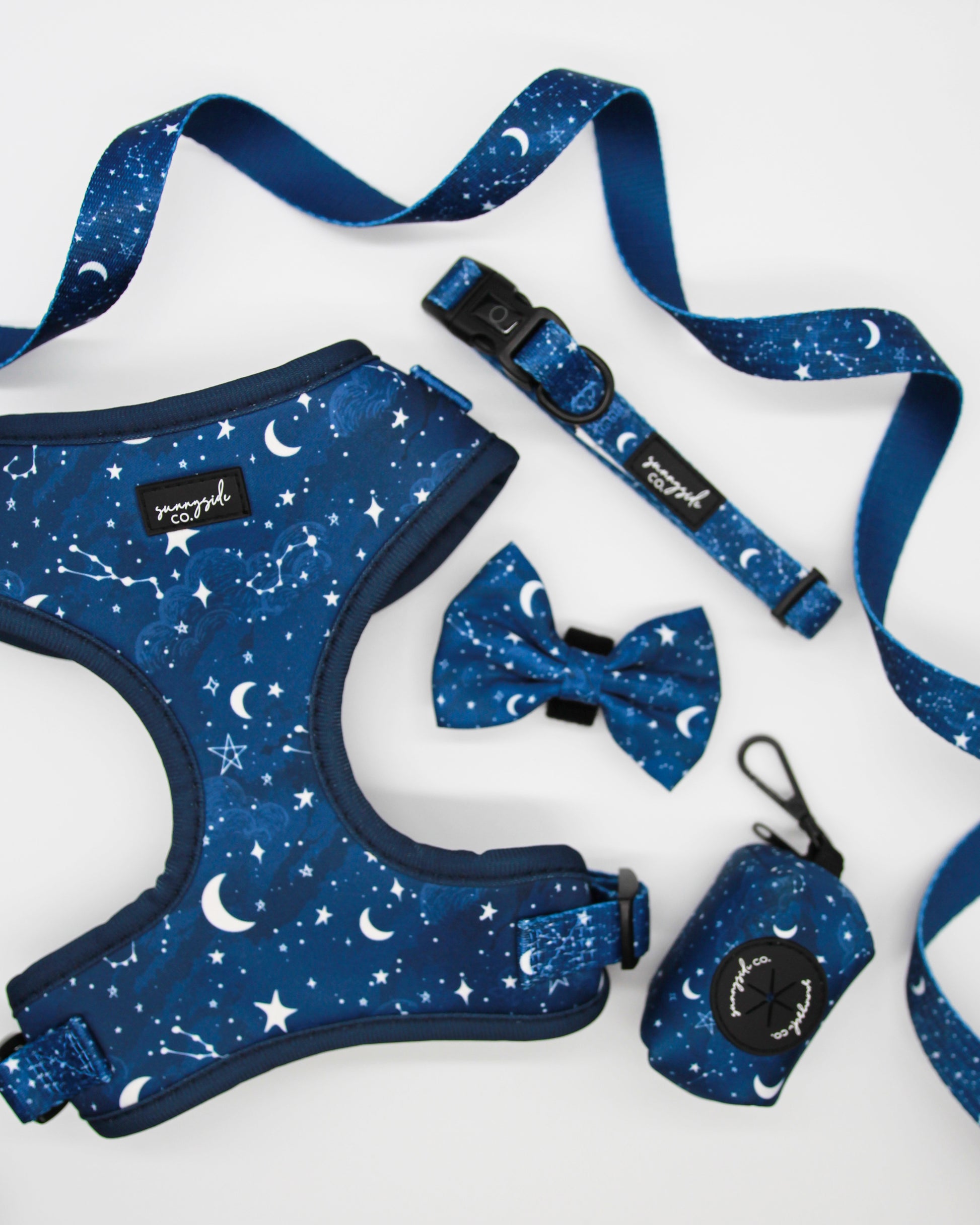 Pair this collar with the matching harness, lead, poop bag holder and bow tie!