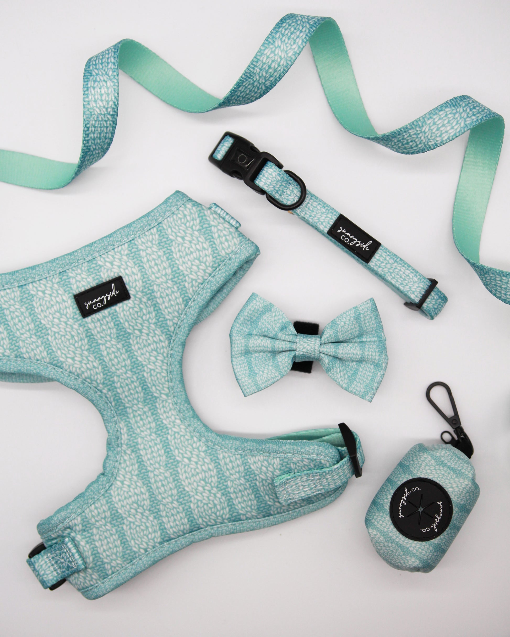 Pair this collar with the matching harness, lead, poop bag holder and bow tie!